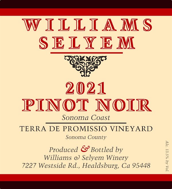 Williams Selyem Pinot Noir Sonoma Coast Terra de Promissio Vineyard 2021 | $ 00