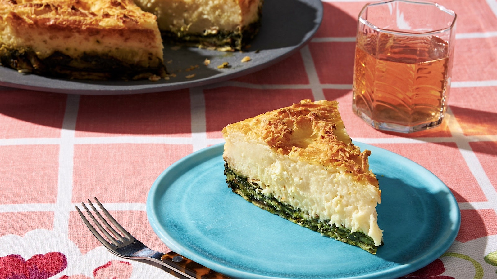 6. Remove the sides of the springform, transfer the mina to a serving platter, and cut into wedges. Serve hot.